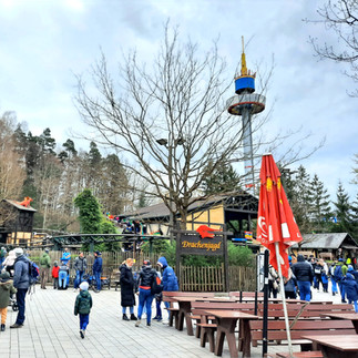 Um uns einen besseren Überblick über den Park zu verschaffen, entschieden wir uns für den Ausblick aus dem Aussichtsturm. Bei diesem bunten Turm handelt es sich um das Wahrzeichen des Parks. In 43 Metern Höhe kann man einen fantastischen Blick über den gesamten Park genießen. Für den Rundumblick dreht sich die Panorama-Kabine zusätzlich um sich selbst. Da diese Attraktion für alle Besucher ab einer Körpergröße von 80 cm verfügbar ist, kann hier die gesamte Familie mit machen.